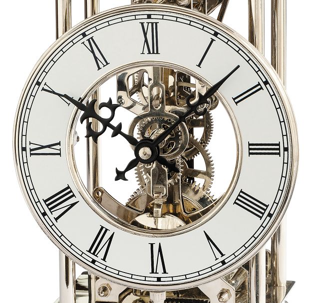スケルトンデザインが魅力の機械式振り子置き時計!