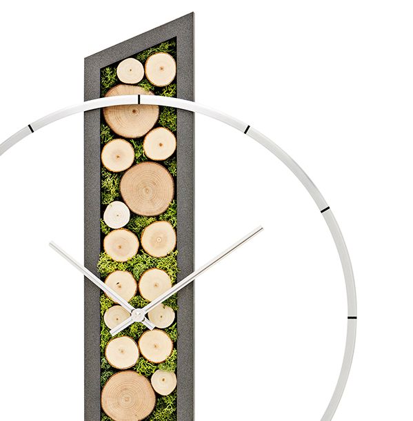 シンプルなアルミリングにスマートな本体部には植物系が配置された、温かみを感じるお洒落なクロックです。