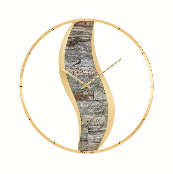 シンプルなアルミリングに曲線を描いた組み合わせストーンの本体がマッチするお洒落なクロックです。
